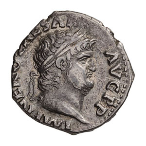 Nero. 54-68 AD. Denarius, 3.09gg. (5h). Rome, c. 67-8 AD. Obv: IMP NERO CAESAR - AVG P P Head laureate right. Rx: SALVS in exergue, Salus seated left on high-backed throne, holding patera and resting left elbow on arm rest. BM 98. Paris 242. Cohen 316 (3 Fr.). RIC 71 (R ). Scarce with this obverse legend; probably three specimens in Reka Devnia hoard (as Cohen 319). EF.